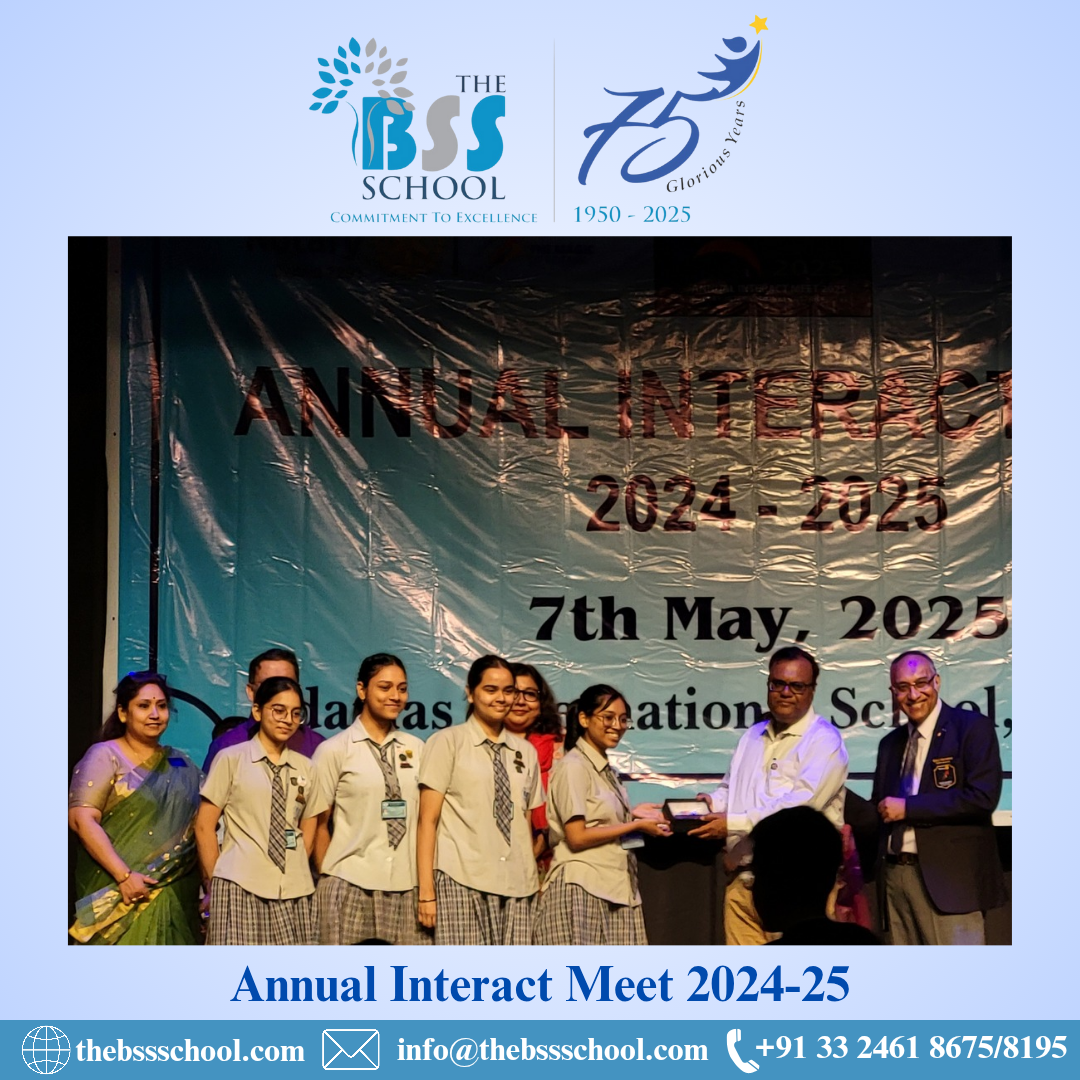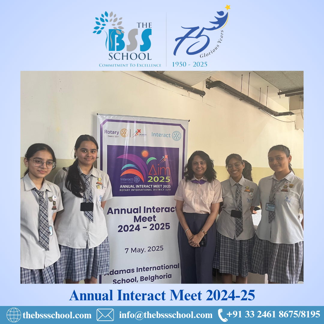 The Annual Interact Meet, ‘AIM 2024-25’ hosted by Adamas International School, Belghoria, in partnership with The Rotary Club, showcased The BSS School’s brilliance. The BSS School excelled, securing 3rd prize in the River Cleaning Drive and 2nd prize in Care for Differently Abled Children. This achievement highlights the school’s and club’s interactive spirit, driving positive change through meaningful engagement.