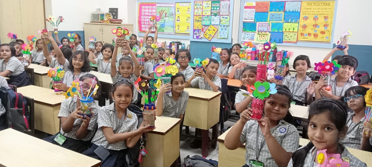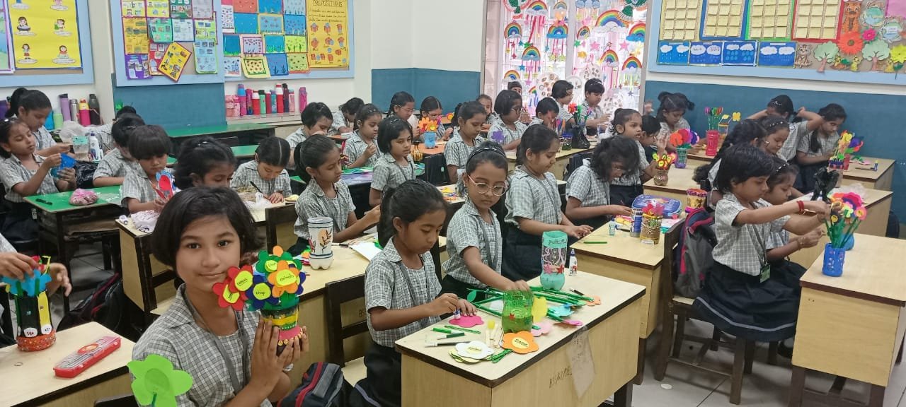 English – Flower vase with Naming words (nouns). Through this project the students could identify and use naming words creatively through a craft activity.