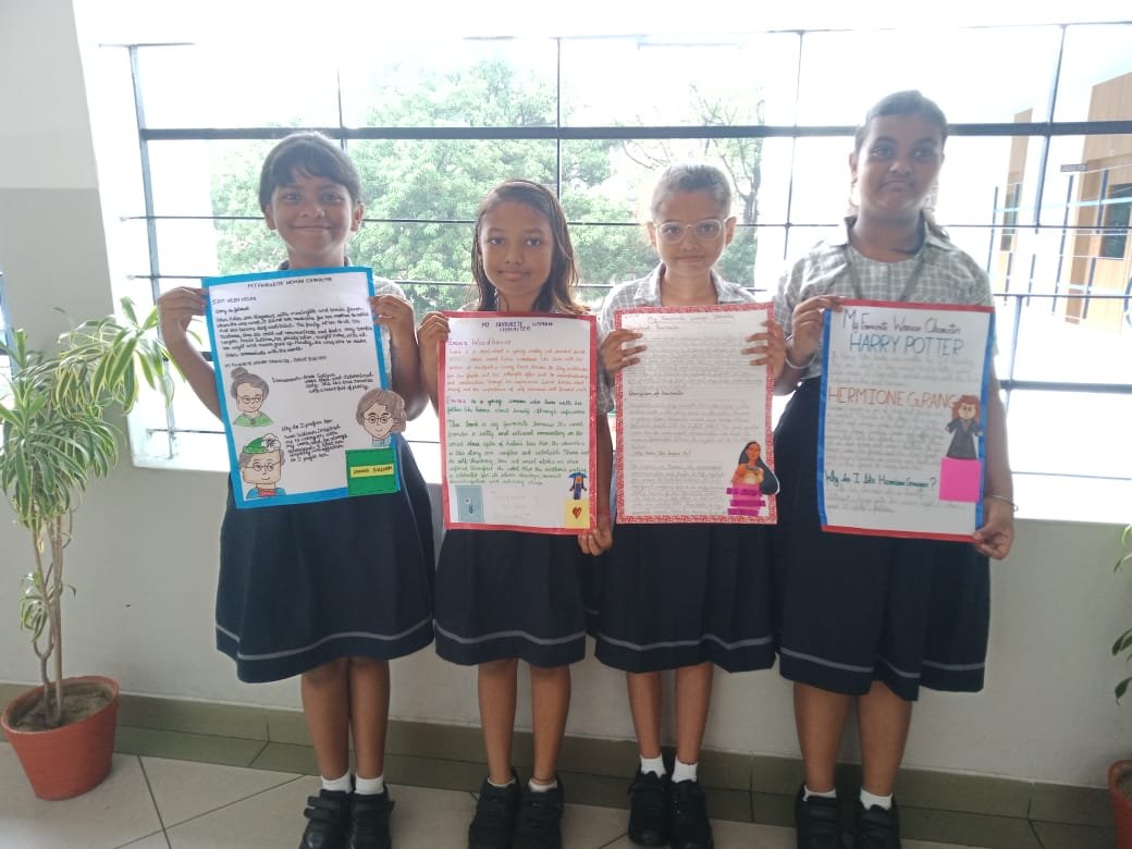 The students of Class IV worked on a literature project based on the topic “My Favourite Woman Character.” Through this activity, they had the opportunity to explore a woman character of their choice and analyse her unique traits and qualities. Creating a stick puppet to represent their chosen character showcased their creativity and imagination. Overall, it was an enriching experience that enhanced their skills at multiple levels.
