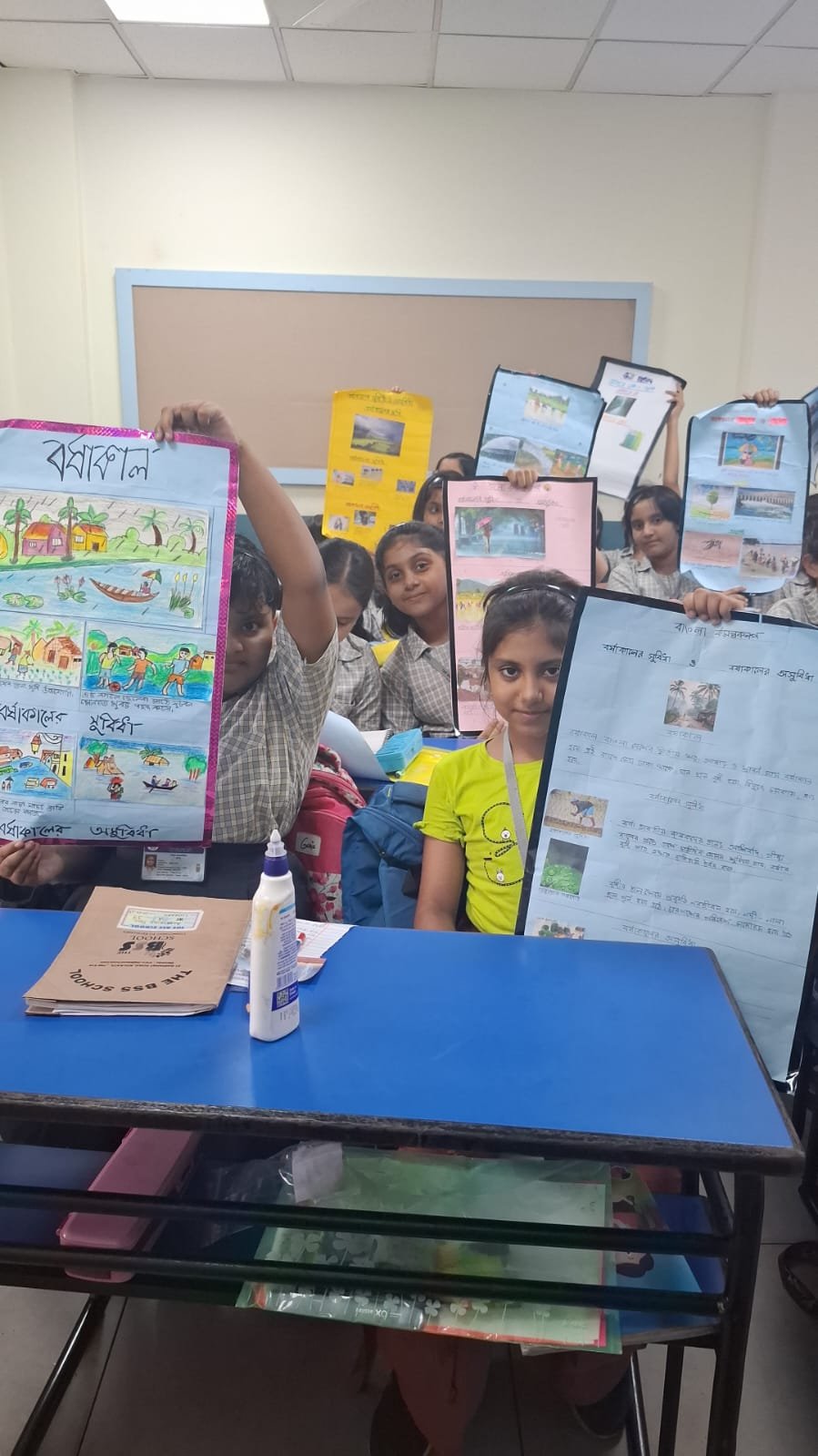 Students of Class IV made a project on the topic “Problems and Blessings of the Rainy Season.”
