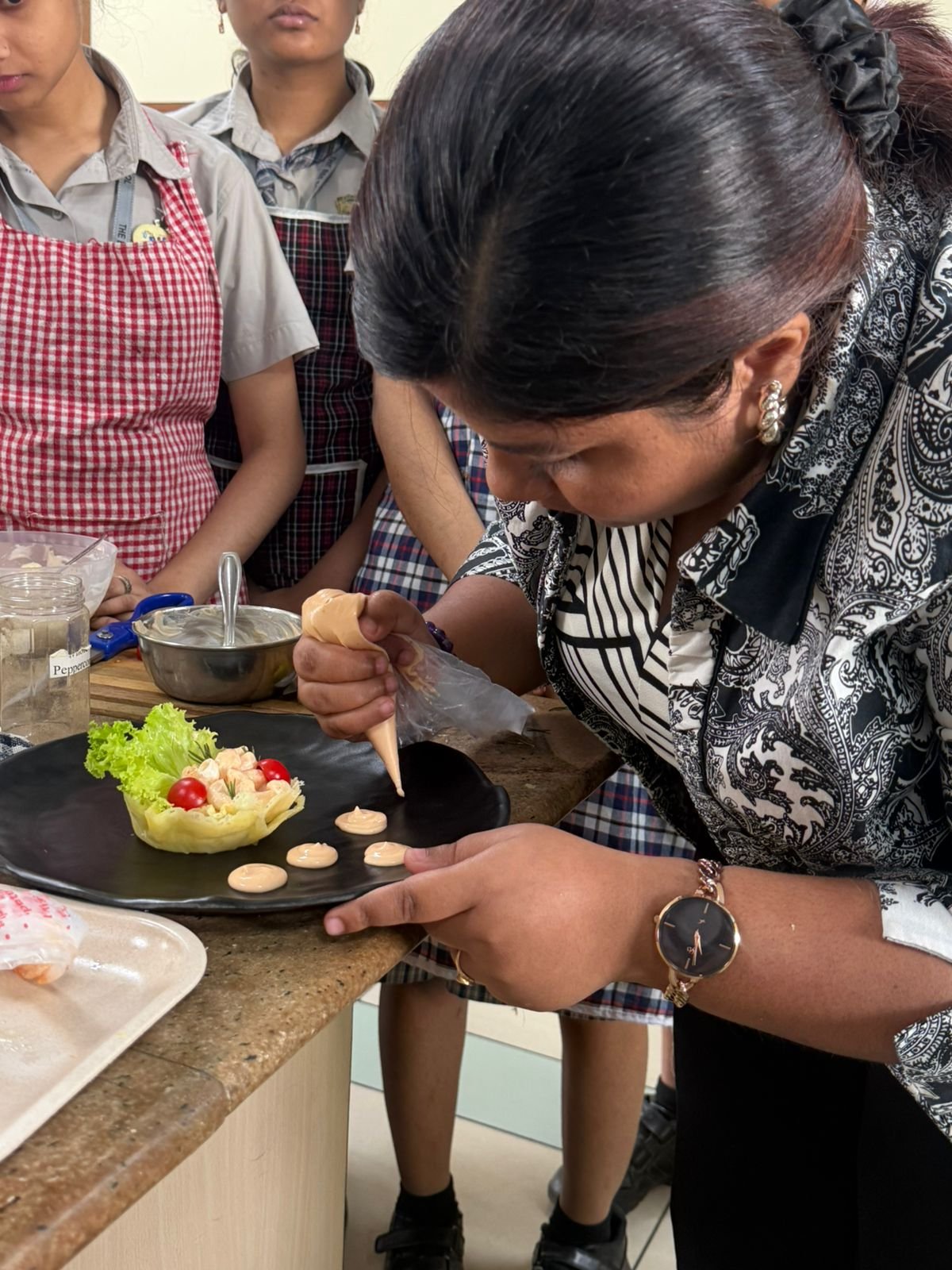 At The BSS School ; BSS alumna & award-winning chef Sayantika Ghosh hosted an engaging culinary workshop, sharing her global journey along with live cooking, beverage, and plating techniques.